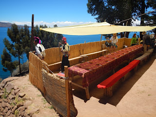 We arrived on the island and were greeted by the people who live there. About 30 people. Each island has its own president nominated on a rotating basis. The islands together have a president who is elected. The president of Uros island met us at the boat and told us all about the island and their way of life.